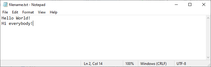 结果,当我们在计算机上打开文件时,它显示的是 "Hello World!" 而不是 "Some text":