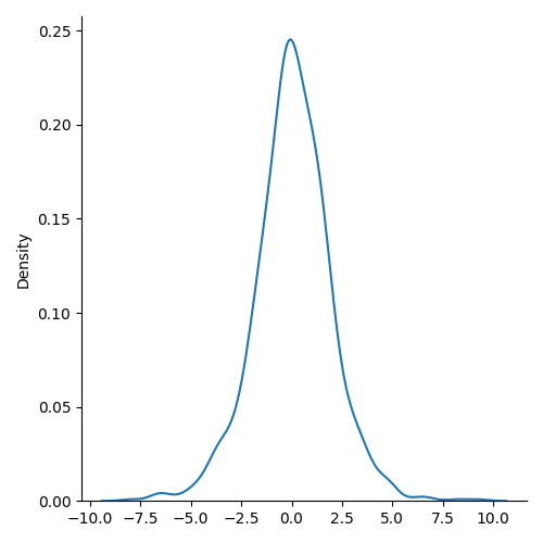 from numpy import random import matplotlib.pyplot as plt import seaborn as sns sns.displot(random.logistic(size=1000), kind="kde") plt.show()