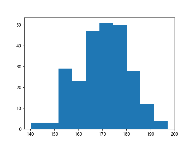# 以下三行代码使编译器支持绘图功能: import sys import matplotlib matplotlib.use('Agg') import matplotlib.pyplot as plt import numpy as np # 生成正态分布数据: x = np.random.normal(170, 10, 250) # 均值 170,标准差 10,250 个数据点 # 绘制直方图: plt.hist(x) # 创建直方图 plt.show() # 显示图表 # 以下两行代码使编译器能够输出图形: plt.savefig(sys.stdout.buffer) sys.stdout.flush()
